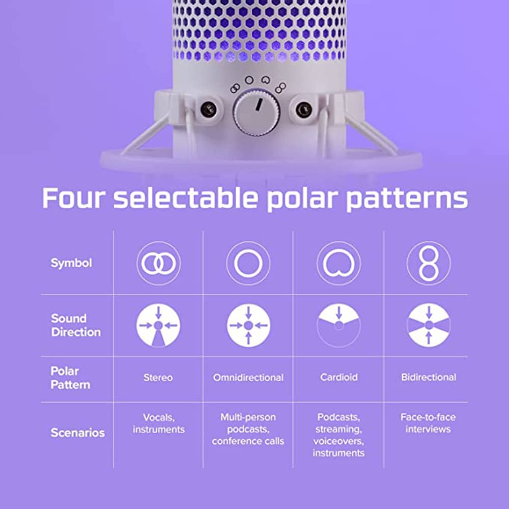 - Four selectable polar patterns: Choose between four polar patterns (stereo, omnidirectional, cardioid, bidirectional) to optimize your broadcast setup and keep the focus on the sounds you want to be heard.