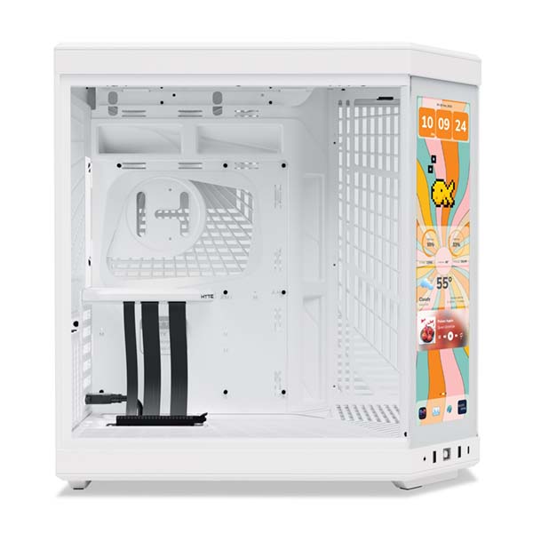 Y70 Modern Aesthetic Case - 14.5" Integrated IPS Touchscreen Enhanced In Every Dimension Y70 is an upgraded dual chamber ATX mid tower modern aesthetic case that delivers next gen gaming experiences with massive 4 slot vertical graphics and unlocks maximum performance via ginormous cooling capacity. All while celebrating your favorite hardware by showing off your PC the way it was meant to be seen. Product Features Mesmerizing 14.5" Integrated IPS Touchscreen (Y70 Touch Infinite Only) At a 682 x 2560 (2.5K) resolution and 60Hz refresh rate, this capacitive IPS touchscreen delivers an insanely crisp and buttery smooth visual experience with 10-point multi-touch capability, unlocking a magnitude of possibilities and extensive screen customization powered by HYTE Nexus software. Our bigger, brighter, 3rd generation panel features a larger 14.9" display with a 43% higher brightness for a more immersive user experience. All in a single package integrated into the case chassis structure, pioneering meaningful digital interaction with the best display ever in a case. Massive 4 Slot Vertical Graphics Y70 grows GPU support to 4 slots with additional airflow space between the edge of the card and the glass. This means you can fit even the largest and most powerful of graphics cards into your build with ease. Additionally, the cold floor cooling down below can house up to a trio of 120mm or duo of 140mm fans up to 32mm thick to direct fresh airflow straight into the GPU. Included Luxury PCIE 4.0 Riser Cable Included with the case is a luxury PCIE 4.0 x 16 riser with a color-matched canopy for uninterrupted visual flow that'll make for a painless GPU installation and build process. It also allows for a plethora of half-height PCIE cards to sit behind the throne of the vertical graphics. Ginormous Cooling Capacity A spacious interior makes room for up to a 360mm long & 125mm thick radiator on the side and adjustable top bracket that can house another 360mm radiator up to 68mm thick up above. Working together with the cold floor cooling at the bottom and spot for an additional fan at the rear of the case, Y70 has a total capacity of 10 fans in a fully populated chassis. With over 180mm of clearance to the side glass, air and water cooling enthusiasts alike will appreciate the flexibility afforded to them by the chassis to create the most robust cooling configurations possible. Unified Modern Aesthetic With 4 unique colorways, Y70 puts your build front and center with a beautifully crafted 3-piece panoramic glass which serves as a window into the heart of your PC. The dual chamber interior layout keeps the front looking great while giving you plenty of space to manage cables in the back, especially with the help of our seamless L-shaped molded rubber grommet, meticulously placed cable routing channels & tie-down points, and reusable Velcro straps. All easily accessible with tool-less top and side panels alongside floating storage sleds that eject from the rear of the case for intuitive drive maintenance.Specifications