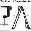 - Heavy-duty Structure Mic Stand: The extra strong spring prevents the microphone from accidental dropping, noise generation and shaking. It has a table mounting clamp and protective layers of sponge. An adjustable positioning screw can easily clip to any desktop with a thickness of 2″.