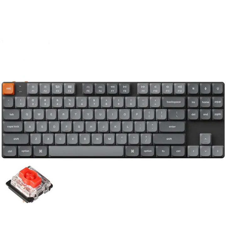 Keychron K1 Max is an ultra-slim wireless custom mechanical keyboard. It supports 2.4 GHz, Bluetooth, and a wired connection. It allows anyone to master any keys or macro commands on its 80% TKL layout through Keychron Launcher web app. Besides, it has included LSA (low profile spherical-angled) profile keycaps for both Windows and macOS, and users can hot-swap with Gateron low-profile MX mechanical switch in a breeze (for RGB Backlight Hot-Swappable Version only).