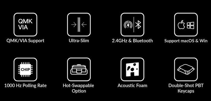Designed for premium type feeling, the K1 Max comes with our unique double-shot PBT keycaps that made of durable non-backlight shine through PBT material with excellent oil resistance for long-term use.