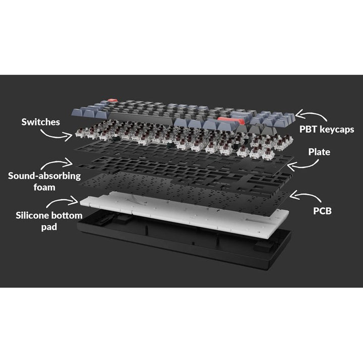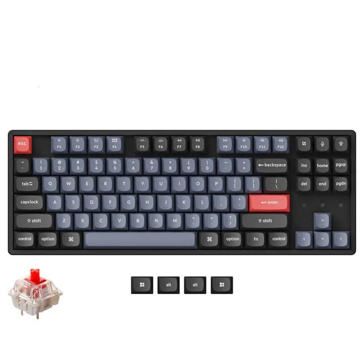 Anyone can master any keys or macro commands through Keychron Launcher web app on the K8 Pro. Together with our signature features and upgraded typing sound, the K8 Pro is advancing the typing experience to an entirely new level with endless possibilities. Wireless and Wired An excellent solution for multitasking. You can connect the K8 Pro with up to 3 devices wirelessly via its stable Broadcom Bluetooth 5.1 for seamless multitasking across your laptop, phone, and tablet. Switch among them swiftly, and it’s fully compatible with both Mac and Windows. A reliable USB Type-C wired connection is also available when you need it.Program with QMK & Launcher. The open-source QMK firmware means endless possibilities for key remapping, macros, shortcuts, and more. Now you can easily customize each key with the Keychron Launcher web app. Upgraded Typing Experience The K8 Pro has been re-engineered and redesigned from the inside out to upgrade the typing experience. The added sound-absorbing foam, a thick silicone dampening bottom pad, and steel plate provide responsive feedback and a peaceful typing sound, while added weight will enhance the stability. Suitable For All Devices Offers a Mac layout while still being compatible with Windows, the K8 Pro is one of the few on the market that has the same multimedia and function key functions as Apple keyboards for Mac users, but with more tactile feedback. You can even configure different keymaps for both Mac and Windows devices. While Keychron Launcher web app is compatible with macOS, Windows, and Linux. Includes keycaps for both macOS and Windows (4 keycaps for each) to allow you to switch between operating systems with ease. Hot-swappable (Optional) We also provide a hot-swappable version for your choice, which means you can customize your typing experience without soldering, pop them in and it's done. Every detail matters for a personalized typing experience, that’s why we give you the power. You can hot-swap every switch on the K8 Pro with almost all of the 3pin and 5pin MX style mechanical switches on the market (including Cherry, Gateron, Kailh, Panda, etc.) without soldering. You can customize your own typing experience in seconds. |