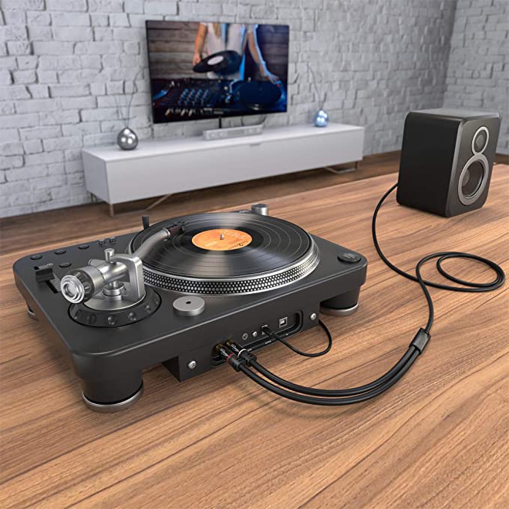 • Bidirectional audio transmission outputs sound from a DVD player with RCA/phono jacks to a set of headphones with a 3.5mm jack or sound from a computer with a 3.5mm jack to a set of speakers with RCA/phono jacks