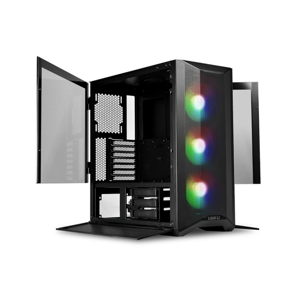 LANCOOL II MESH RGB features a mesh front panel and mesh bottom left shroud panel, honeycomb vent design and built-in RGB fans ensuring bountiful airflow delivered to your high-performance components while adorning the system with an RGB touch.