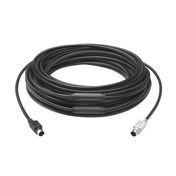 Accommodate very large meeting rooms with the Logitech GROUP 15m Extended Cable. Compared to the standard cable included with GROUP, this cable triples the distance from the hub to the camera or speakerphone, up to 15 meters. Designed and engineered by Logitech specifically for Logitech GROUP, this cable is plenum-rated and can be routed through a conduit for clean conference room installations.