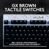 - Durable GX Brown Tactile switches deliver discernable feedback to ensure confidence and precision in actuation without being too loud or distracting.