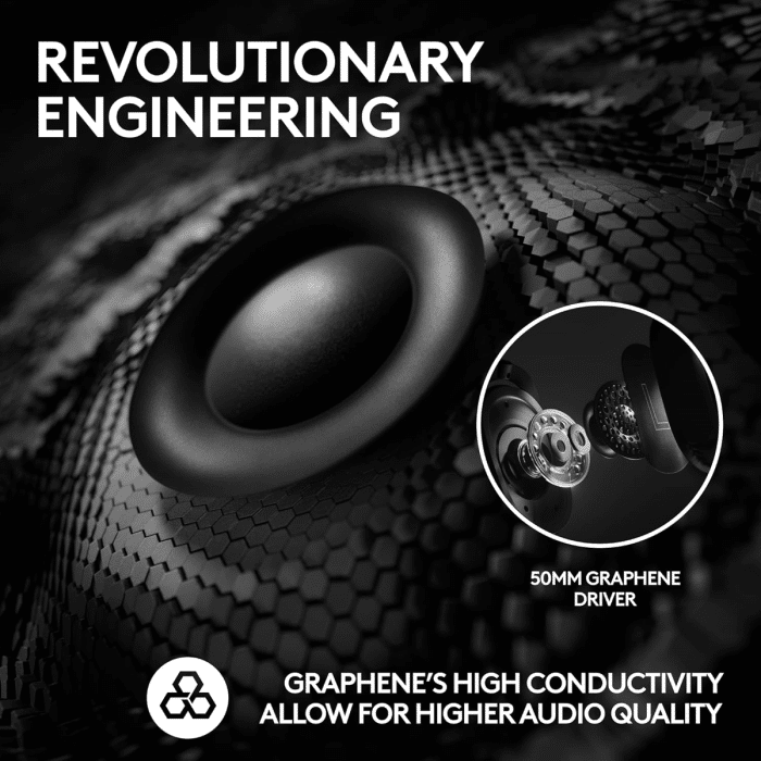 - Clear Audio: 50mm Graphene drivers provide clear and immersive audio with low distortion—capturing the entire soundscape of the game with audio cues like footsteps and actions