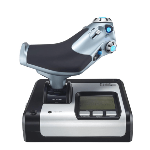 Saitek's X52 defines precise flight simulator operation, employing a multifunction LCD for easy access to astounding programmable commands. Coordinate your flight plan with clock and stopwatch function, plus an adjustable handle to accommodate a wide range of hand sizes.