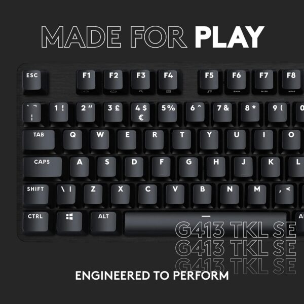 G413 TKL SE features tactile mechanical switches, 6-key rollover anti-ghosting, PBT keycaps and durable aluminum alloy build—all in a tenkeyless design.