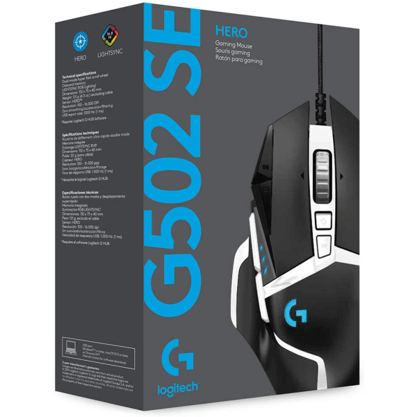 G502 SE HERO features an advanced optical sensor for maximum tracking accuracy across the full DPI range, customizable RGB lighting, custom game profiles, adjustable weight system.