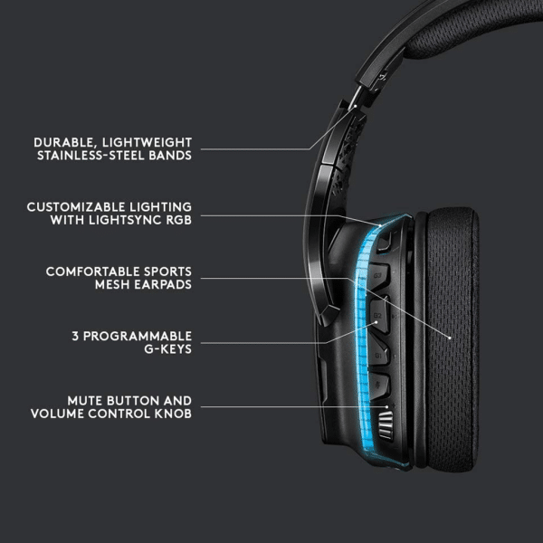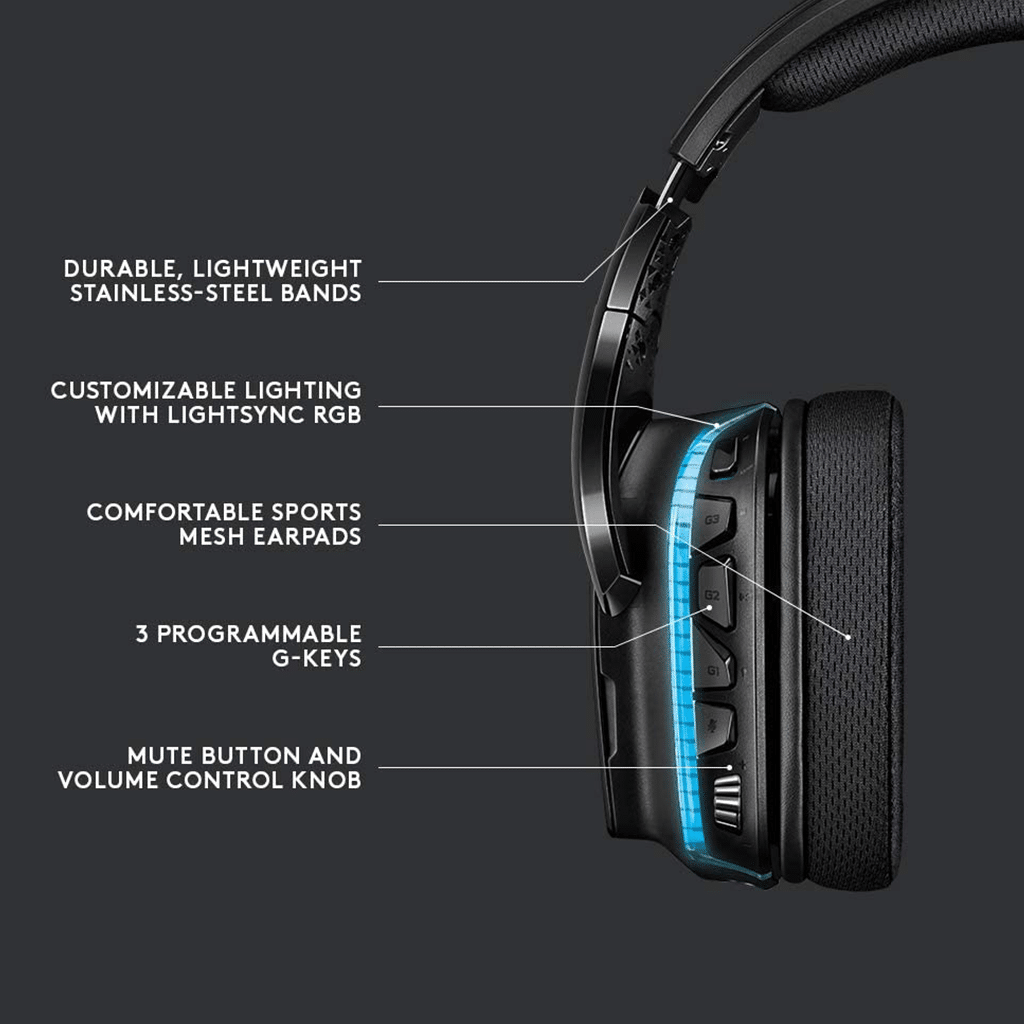 - Lightsync RGB game-driven lighting, EQ settings and more can be customized through downloadable Logitech G hub software