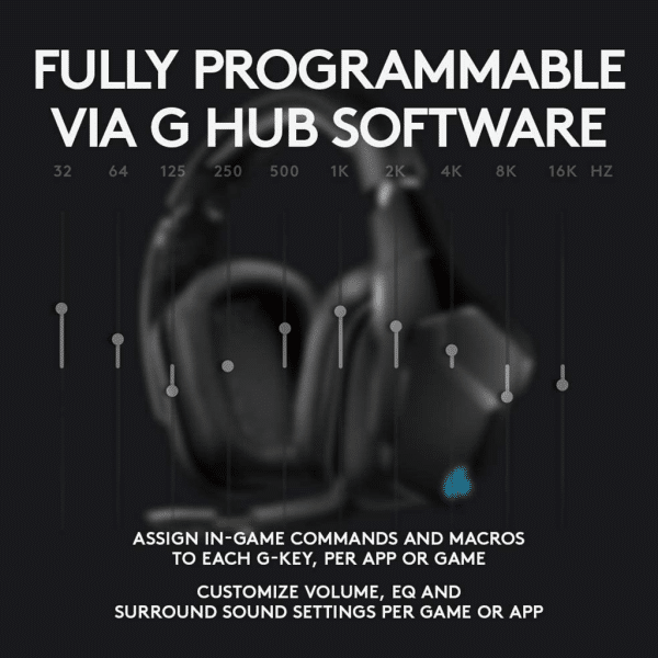 G935 is the ultimate wireless gaming headset, enhanced with the most advanced Logitech audio technology. Large 50mm Pro-G drivers and DTS Headphone:X 2.0 surround sound deliver an immersive gaming experience. Hear both subtle and explosive parts of your game in a precise positional 3D soundscape.
