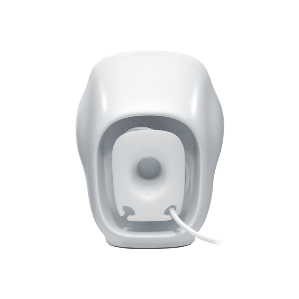 Your desk stays tidy with a system that keeps excess cord neatly stowed away in the back of your speakers.