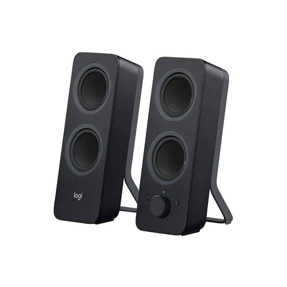 Rich stereo sound 10 Watts Peak/5 Watts RMS power produces room-filling sound. Each speaker has one active/powered driver that delivers full-range audio and one passive radiator that provides bass extension. |