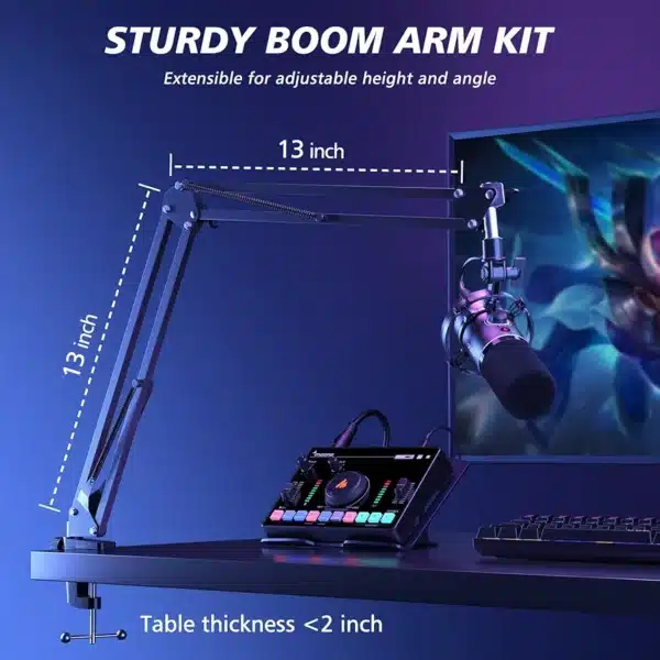 Maonocaster PD200 XS USB/XLR Dynamic Microphone Set with Boom Arm – Black