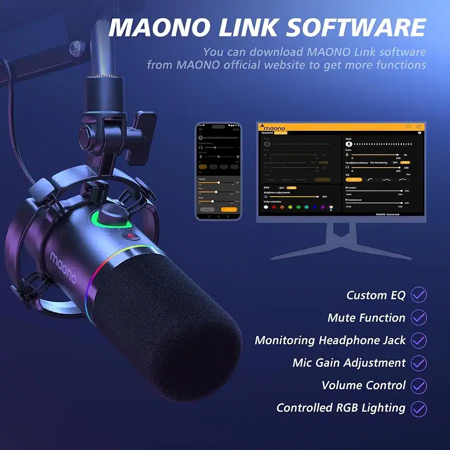The Maono PD200XS microphone is the perfect choice for all gamers and streamers who appreciate excellent sound quality! The built-in dynamic microphone capsule with cardioid characteristic reliably removes annoying background noise, allowing you to get crystal clear sound. Its operation will not be a challenge for you, and the dedicated software will give you access to even more control over the microphone settings.