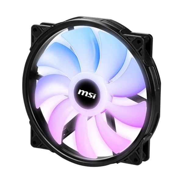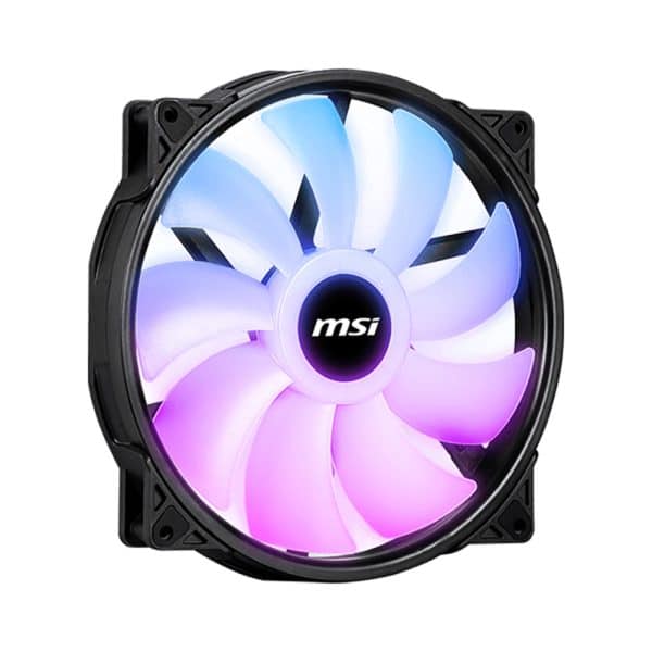 - The MSI MAG MAX F20A-1 features addressable RGB LEDs function that controls fans’ lighting effects