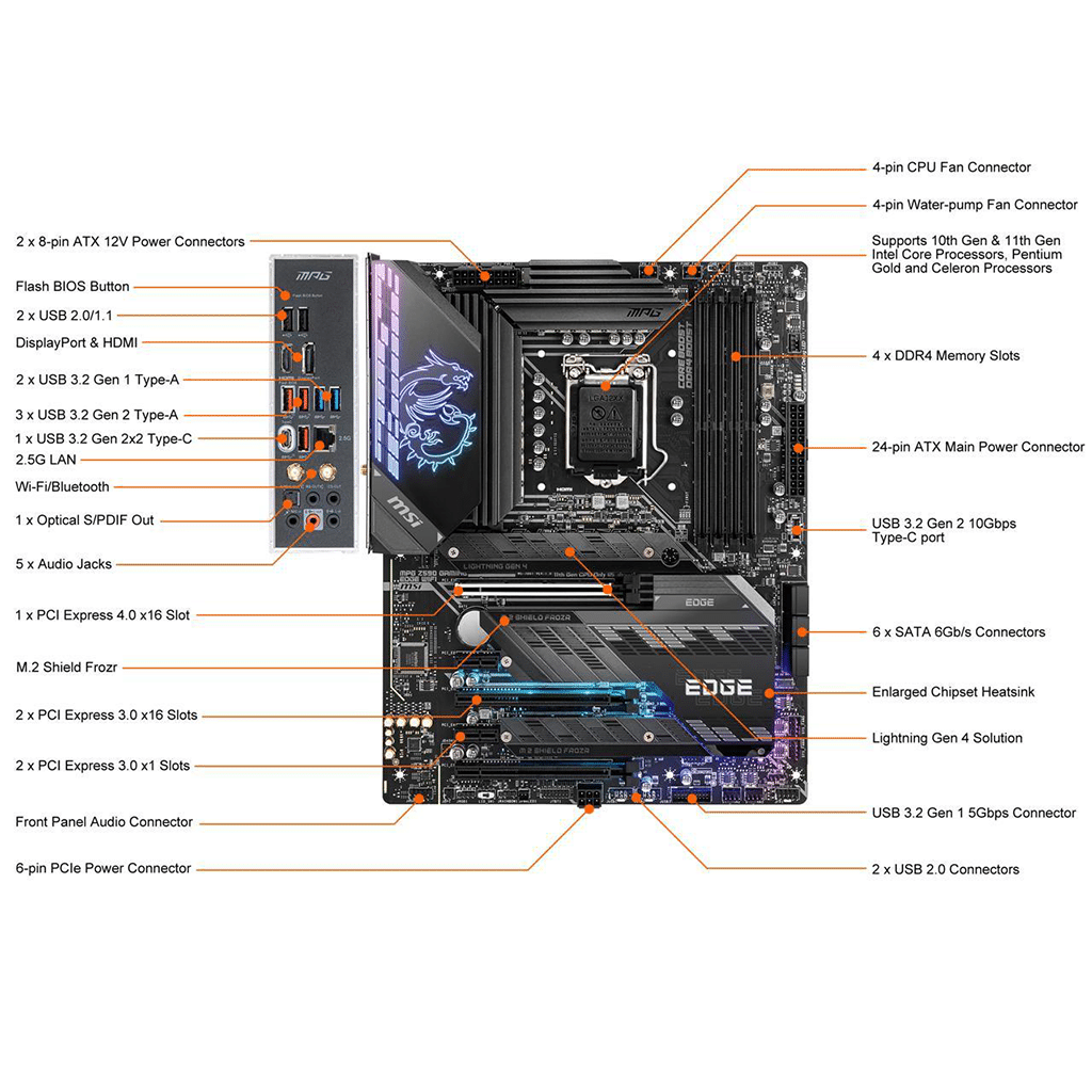 MSI MPG Z590 GAMING EDGE WIFI LGA 1200 Intel Z590 SATA 6Gb/s Intel Motherboard
