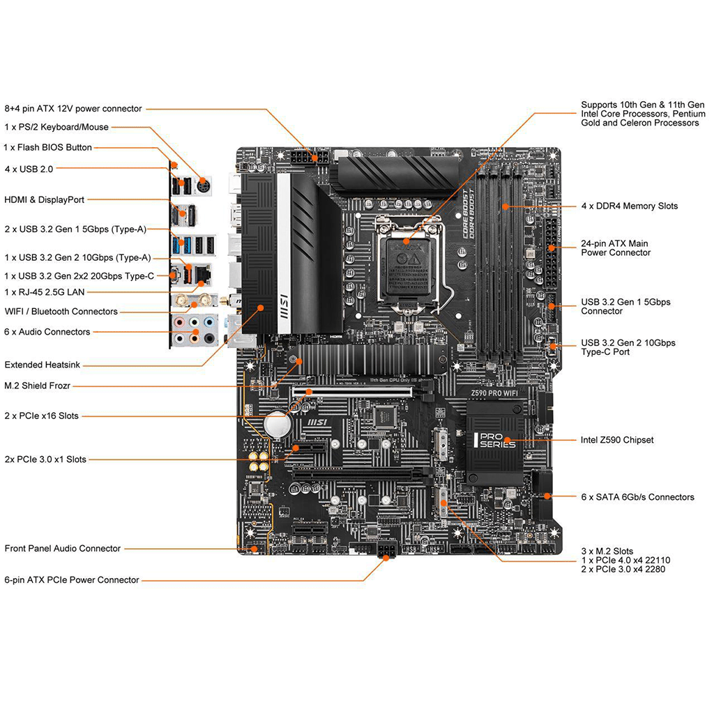 MSI Z590 PRO WIFI LGA 1200 Intel Z590 SATA 6Gb/s ATX Intel Motherboard