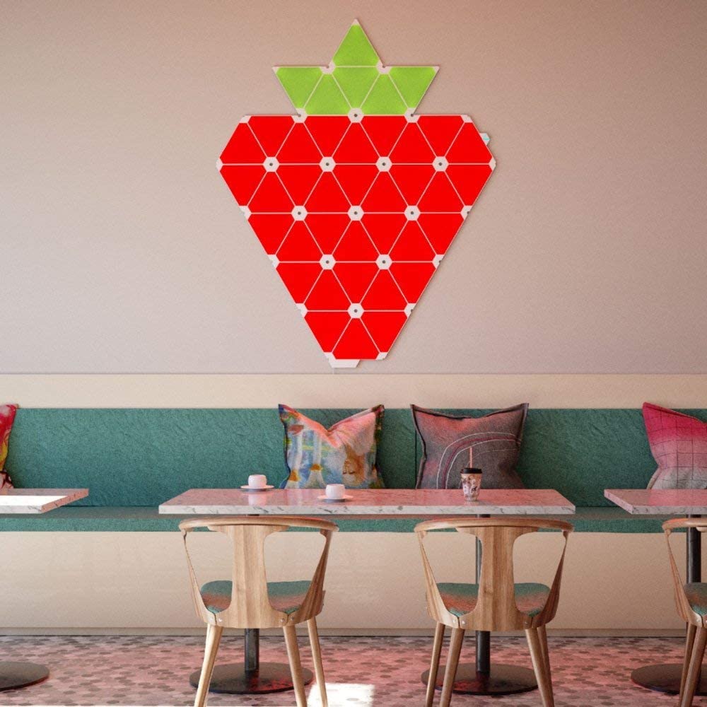 Let your imagination run free. Build your design to stand out or blend in. Piece the triangular panels together into any desired shape. Explore different panel layouts with the Layout Assistant in the Nanoleaf App, and preview them in your room using the AR feature.