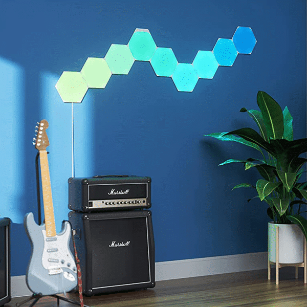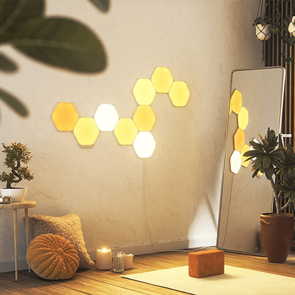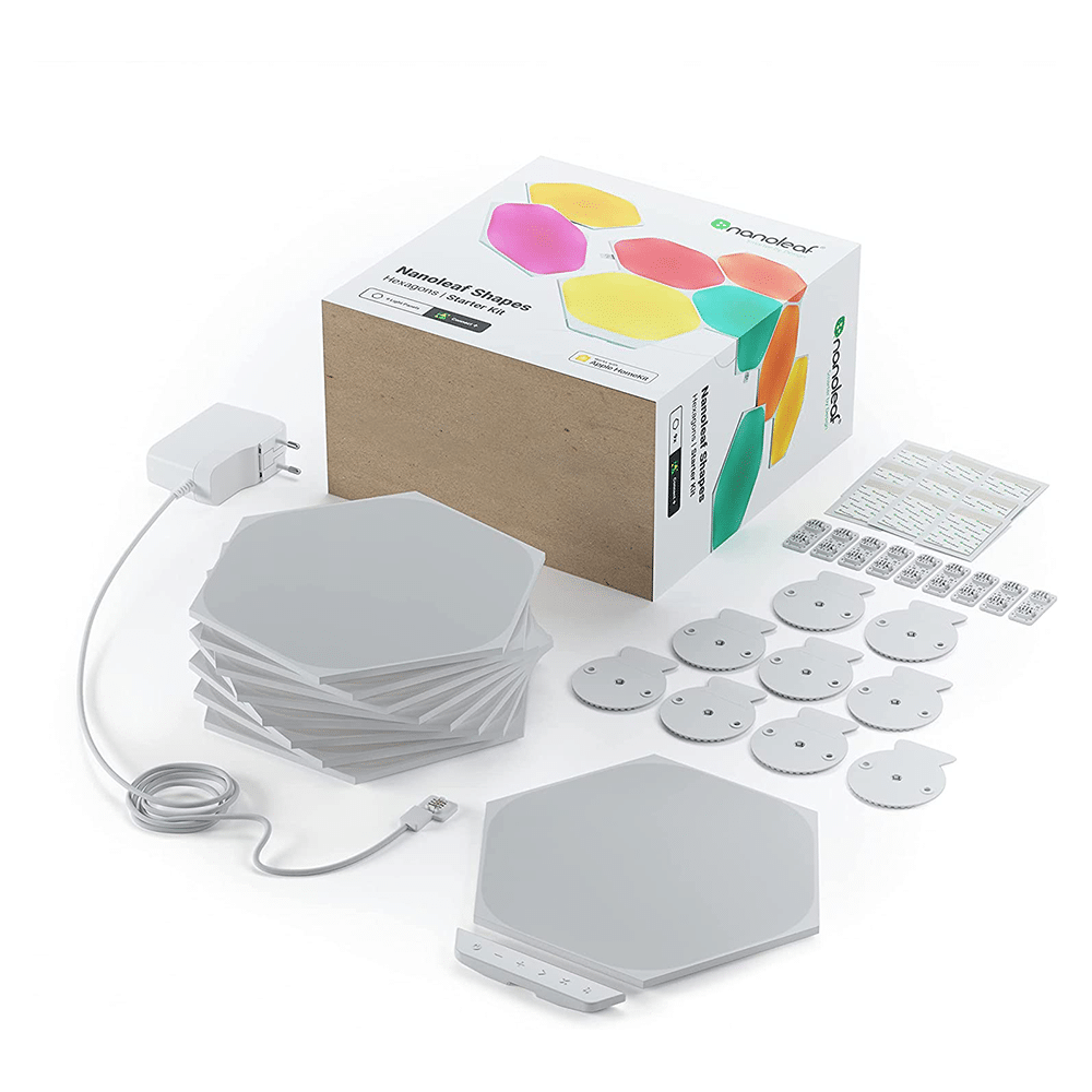 The Nanoleaf Shapes Hexagons are modular LED light panels with a combination of smart technology and sleek ultra-thin design. It's perfect for designing a statement wall, setting up your personal productivity zone, or creating the right ambience for any occasion. Transform your space with multi-sensory experiences like touch interactions, real-time music sync, screen mirror, and more.