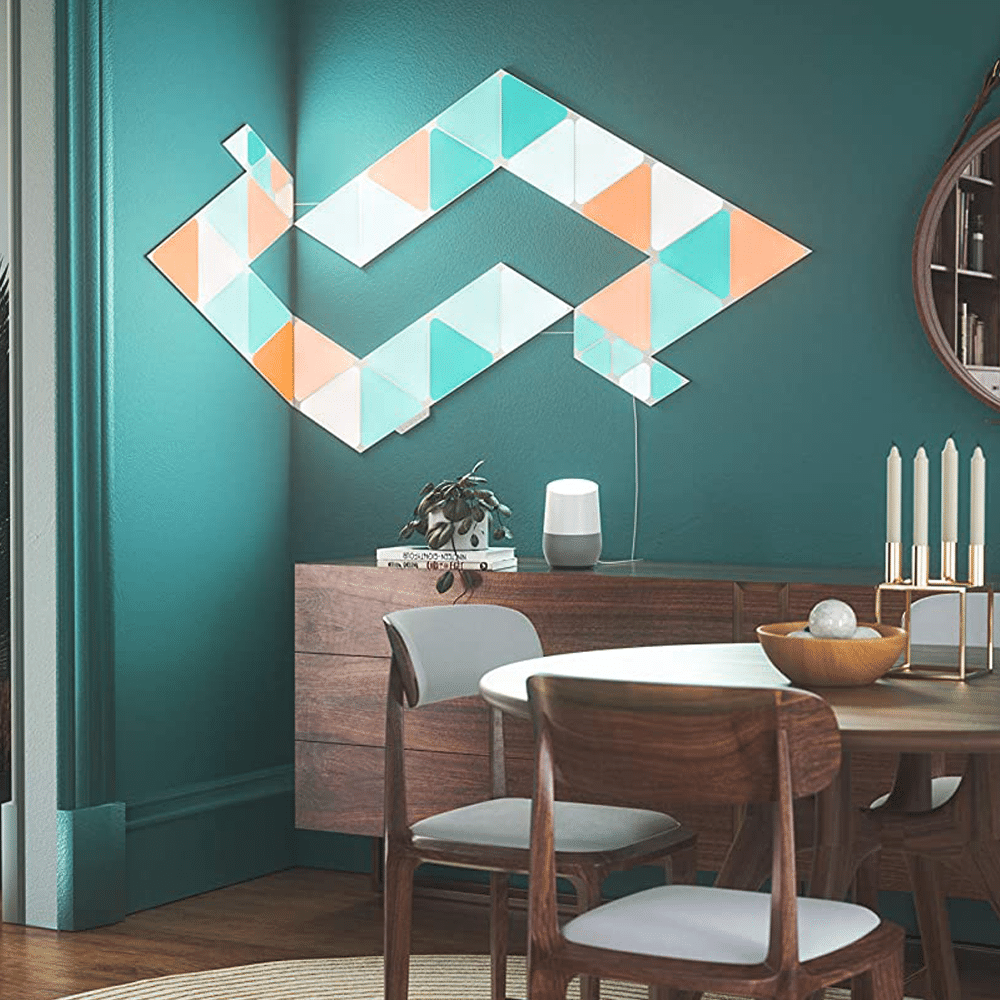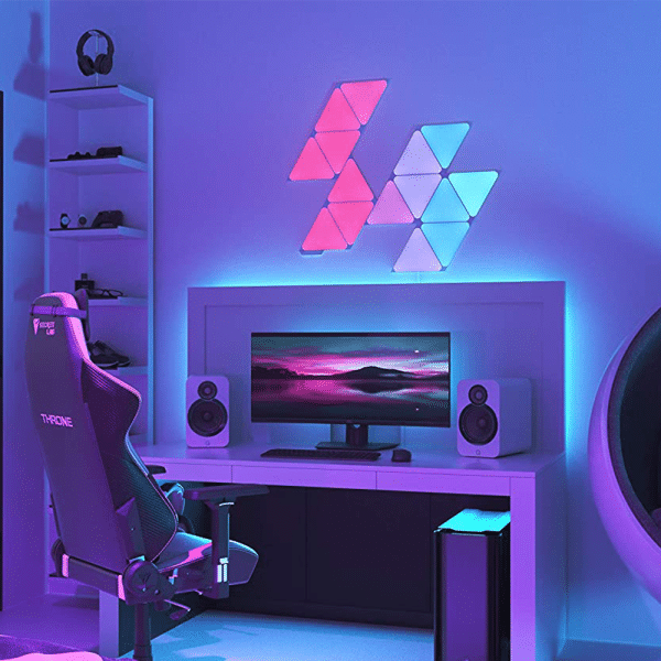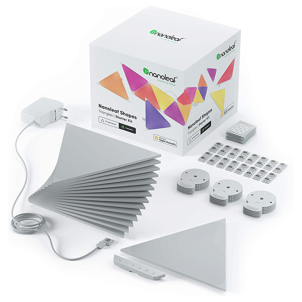 The Nanoleaf Shapes Triangles are modular LED light panels with a combination of smart technology and sleek ultra-thin design. It's perfect for designing a statement wall, setting up your personal productivity zone, or creating the right ambience for any occasion. Transform your space with multi-sensory experiences like touch interactions, real-time music sync, screen mirror, and more.