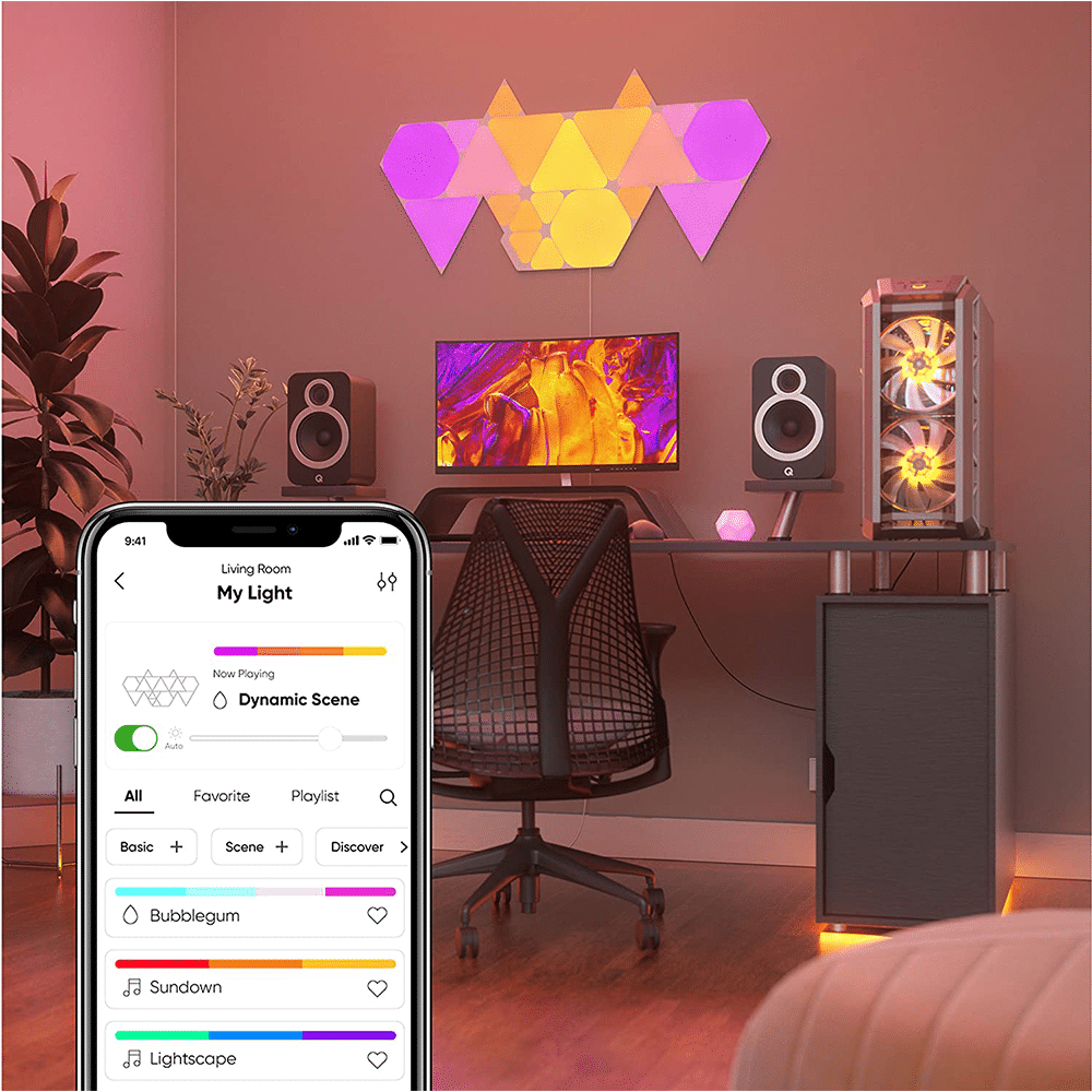 The Nanoleaf Shapes Triangles are modular LED light panels with a combination of smart technology and sleek ultra-thin design. It's perfect for designing a statement wall, setting up your personal productivity zone, or creating the right ambience for any occasion. Transform your space with multi-sensory experiences like touch interactions, real-time music sync, screen mirror, and more.