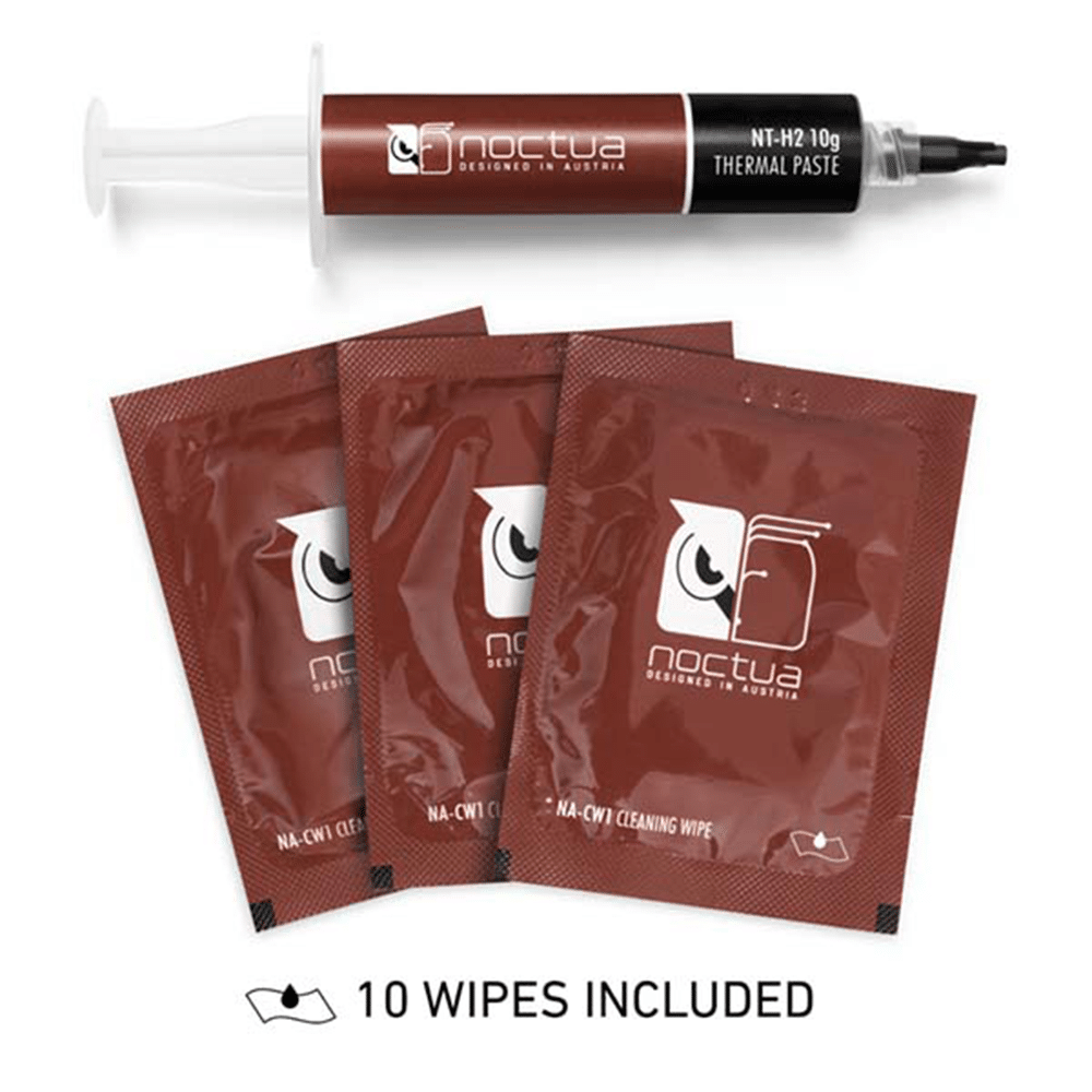 NT-H2 is the further improved second generation of Noctua’s award-winning hybrid thermal compound. Combining the iconic NT-H1’s proven features, superb ease-of-use and renowned long-term stability with a novel, fine-tuned formula of micro particles for even better thermal performance, NT-H2 is an enthusiast-grade paste for the highest demands. Whether it’s air- or water-based cooling, CPU or GPU applications, overclocking or silent systems: NT-H2 will consistently deliver outstanding results and thanks to the included cleaning wipes, it is just as easy to remove as to apply.