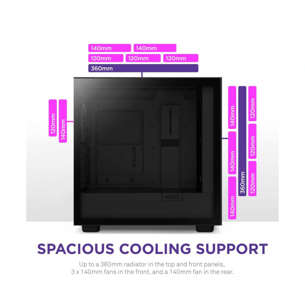 NZXT H7 Elite Premium ATX Mid Tower Two Panel Front & Left Side Tempered Glass Case With 7 RGB Fans – Black