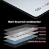 - ALUMINO-SILICATE GLASS Surface – High level of durability and resistance to scratches and cracks and A unique surface pattern.