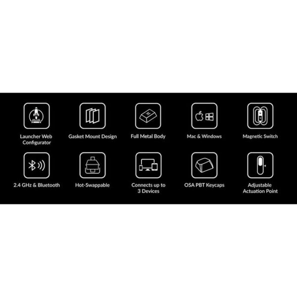 Keychron Q1 HE Meet the Q1 HE, the world's first 75% layout wireless QMK custom keyboard equipped with Hall Effect Gateron double-rail magnetic switches. These switches provide a distinct advantage due to their unique mechanism, offering faster feedback, dynamic rapid triggering, and adjustable actuation points, resulting in epic enhancements for the gaming experience tailored to your individual preferences. In addition to the Hall Effect magnetic switches, the Q1 HE introduces a 2.4G connection mode with an impressive 1000Hz polling rate, further ensuring a lightning-fast gaming experience. But that's not all; it also boasts premium features such as Bluetooth connectivity, a double-gasket design, an all-aluminum body, PBT keycaps, and more. Gateron Double-Rail Magnetic Hall Effect Switches With the first invented dual-rail structure, and the special pre-lubed, these switches ensure unparalleled stability and smoothness like never before. Installed with an optimal magnetic sensor with a sensitivity of only 0.1 mm, it offers more precious feedback. You can customize actuation points and assign multiple actions to a single key based on the travel depth you personalized, enhancing gameplay and providing a customized typing sensation. Adjustable Actuation Point Customize each key with ultra-precise 0.1 mm sensitivity and adjustable actuation points ranging from 0.2 to 3.8 mm. Setting the actuation point to 0.8 mm or 1.0 mm shortens the trigger and increases sensitivity. The reset occurs once you release the key, ensuring a faster response. Dynamic Rapid Trigger Activate or deactivate keys based on travel distance rather than fixed points. They activate precisely upon pressing and deactivate upon letting go, allowing for immediate repetition of keystrokes in mod-motion. This enables you to execute a chain of actions in quick succession during gameplay. Multiple Actions, One Keystroke Assign four actions to a single key based on the depth of your press. For example, lightly press a key to walk forward in a game, and press deeper to run. Additionally, releasing the key also supports two-stage settings. This allows for smoother, personalized combinations that can give you an edge in competitive gaming. Program with QMK & Launcher. The open-source QMK firmware means endless possibilities for key remapping, macros, shortcuts, and more. With the Keychron Launcher web app, you can effortlessly remap keys, adjust actuation points, set the magnetic switches, create personalized macro commands, shortcuts, and key combinations for each key. 2.4 GHz & Bluetooth Connection Experience peak gaming performance on the fly with the Q1 HE's 2.4 GHz wireless connection boasting a rapid 1000 Hz polling rate. For seamless multitasking across your computer, phone, and tablet, you can effortlessly connect the Q1 HE via Bluetooth 5.1 to three devices. A Piece Of Metal Art The entire metal body is crafted from 6063 aluminum, a material known for its increased durability, stability, and premium feel. Not only is this aluminum more resistant to physical damage, wear, and tear, but it is also environmentally friendly and recyclable. These qualities ensure both aesthetic appeal and a commitment to sustainability. |