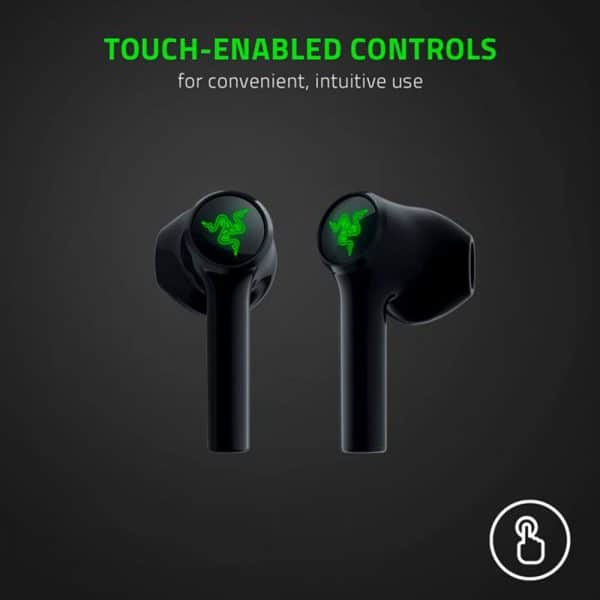 - Touch-Enabled: Control your music and calls, enable Gaming Mode, and activate your smartphone’s voice assistant—all with a few easy taps