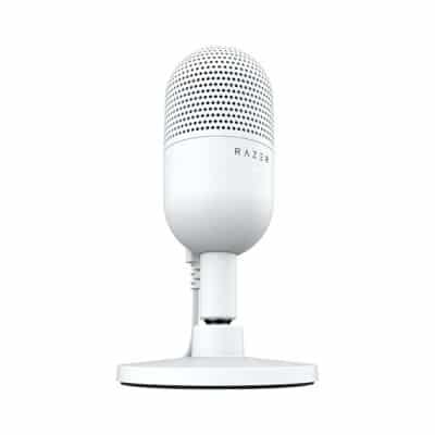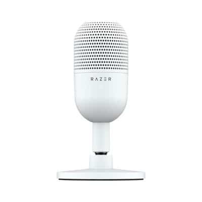 RAZER SEIREN V3 MINI CLARITY MADE COMPACT Meet the Razer Seiren V3 Mini—an ultra-compact USB microphone that now packs even more. Featuring a new tap-to-mute function and advanced audio customization, enjoy studio-quality voice capture with the perfect pint-sized companion for gaming, streaming, and chatting. CONDENSER MIC Crystal-clear Voice Capture Fitted with a custom condenser capsule, the mic's impressive sensitivity can capture more detail especially at higher frequencies, ensuring it broadcasts your voice with stellar clarity and quality. SUPERCARDIOID PICKUP PATTERN Greater Voice Isolation A tighter pickup pattern allows the mic to focus on your voice while suppressing room noise, so you’ll never have to worry about sounds like typing or mouse clicks getting in the way. TAP-TO-MUTE SENSOR WITH LED INDICATOR Instant Control Whether you’re gaming, chatting, or streaming, instantly prevent audio mishaps by simply tapping the top of the mic, and tell at a glance if the mic is active or not with an LED status indicator. BUILT-IN SHOCK ABSORBER Dampens Noise Find your sweet spot with a tiltable mic stand that also features a built-in shock absorber to dampen noise caused by accidental knocks and bumps. Can be detached for a boom arm setup. PLUG-AND-PLAY DESIGN Fuss-free Setup Be ready to game, stream, or chat in seconds. Simply plug the USB mic to your PC and you’re good to go—no software or drivers required. Works with Discord, OBS Studio, and XSplit. ADVANCED CUSTOMIZATION VIA RAZER SYNAPSE One-stop Control Create the perfect setting from one powerful platform. Personalize the mic’s lighting, set studio-level sample and bit rates, manage your stream mix to set separate volume mixes for playback and your stream, and more.Specifications
