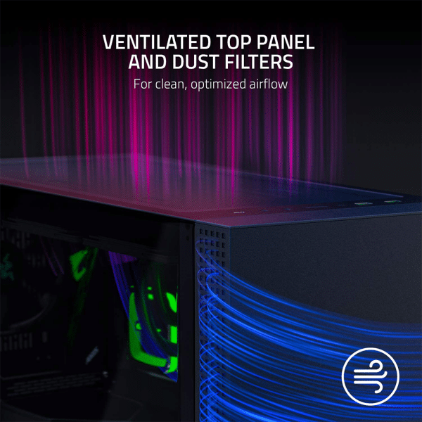 - Ventilated top panel and dust filters for clean, optimized airflow