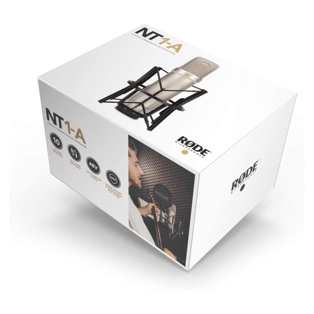 Packaged in the 'Complete Vocal Recording Solution', the NT1-A includes everything you need to get a truly professional vocal recording and is ideal for home studio recording. A studio grade pop shield and shock mount is included, along with a premium 20-feet microphone cable, dust cover, and an instructional DVD packed with recording tips. The RØDE NT1-A large diaphragm 1 inch cardioid condenser microphone is designed and made in Australia, and covered by RØDE Microphones' industry leading 10 year warranty.