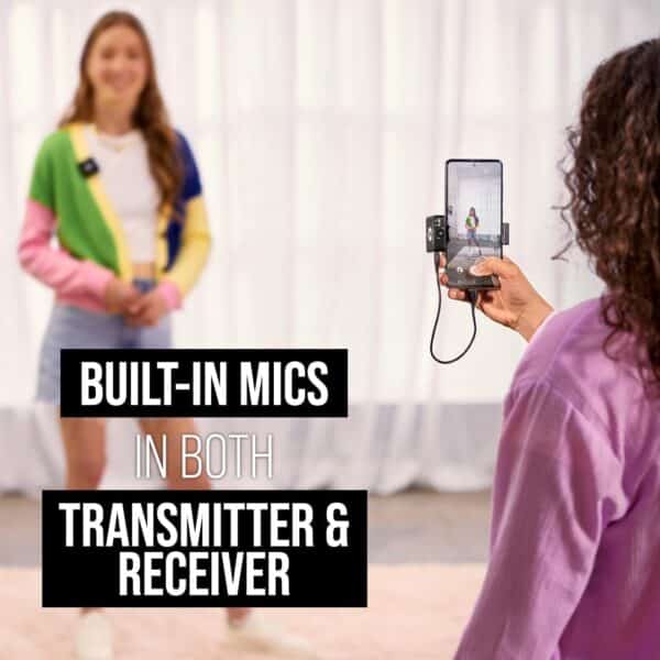 - High-quality microphones built into both the transmitter and receiver