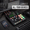 - Compact integrated audio production studio for podcasters and content creators