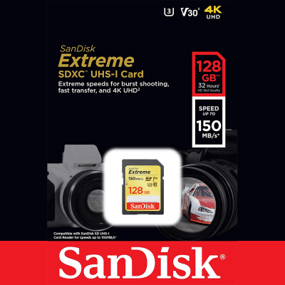 SanDisk Extreme 128 GB SDXC Memory Card, Up to 150 MB/s
