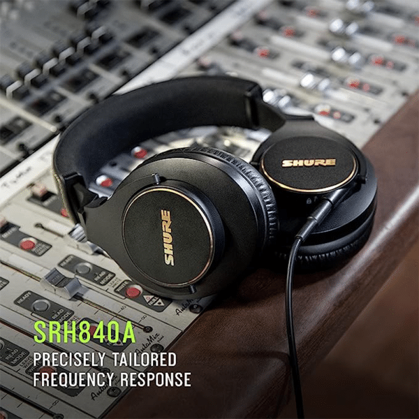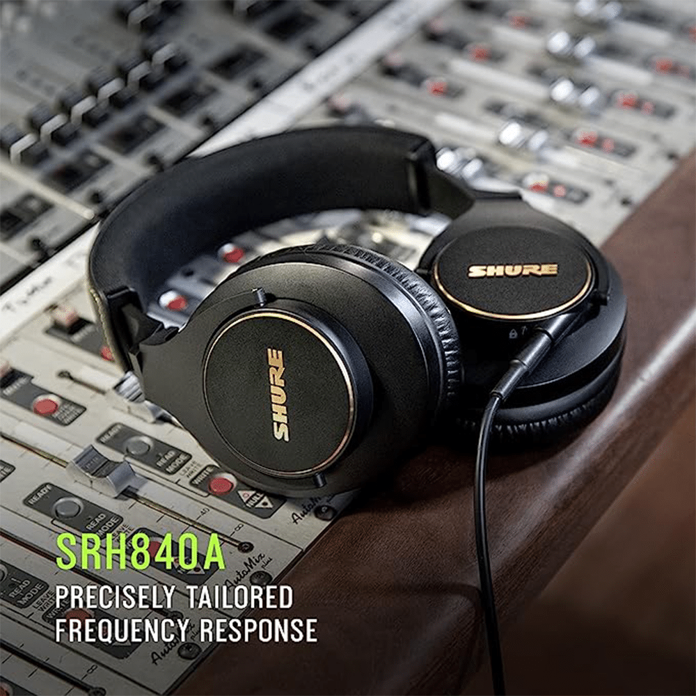 Developed to provide accurate and well-balanced audio, the new SRH840A Professional Monitoring Headphones are optimized for critical listening and studio monitoring. A precisely tailored frequency response and 40mm neodymium dynamic drivers deliver rich bass, clear mid-range and extended highs. A wide, padded headband and collapsible design combine with Shure durability to provide the ultimate listening experience.