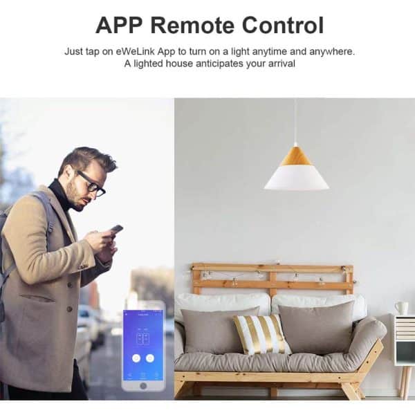 App Remote ControlThe smart WiFi switch helps you check your home appliances status via mobile application eWeLink ( iOS & Android supported) anytime & anywhere. Just simply tap on your smart phone or tablet to turn the connected lights on/off from office, coffee shop, restaurant when you are not at home. |