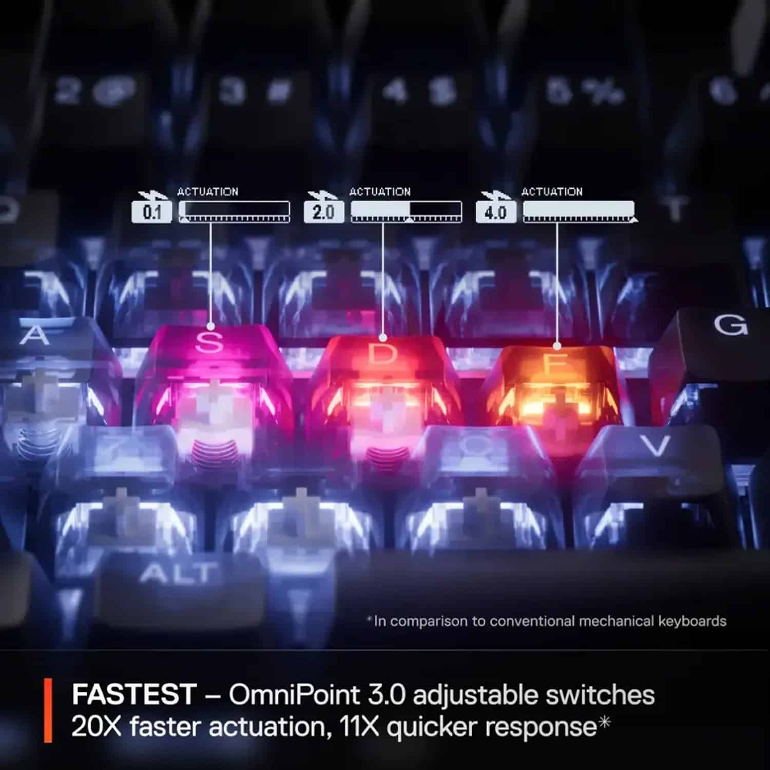 - THE WORLD’S FASTEST KEYBOARD — Push the boundaries with cutting-edge OmniPoint 3.0 switches with Rapid Trigger, Protection Mode, Rapid Tap and full adjustability.