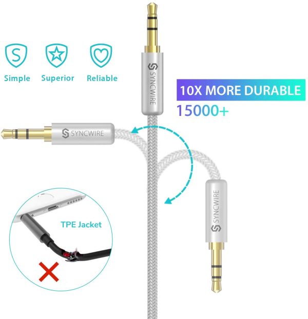 - Syncwire Audio Male to Male Auxiliary Cable is built to last forever. Manufactured by evolved braided nylon, Syncwire Nylon Braided Aux Mini Jack Stereo Lead passes 15000+ bend tests and is strong enough to withstand any twist, tug, and tangle.