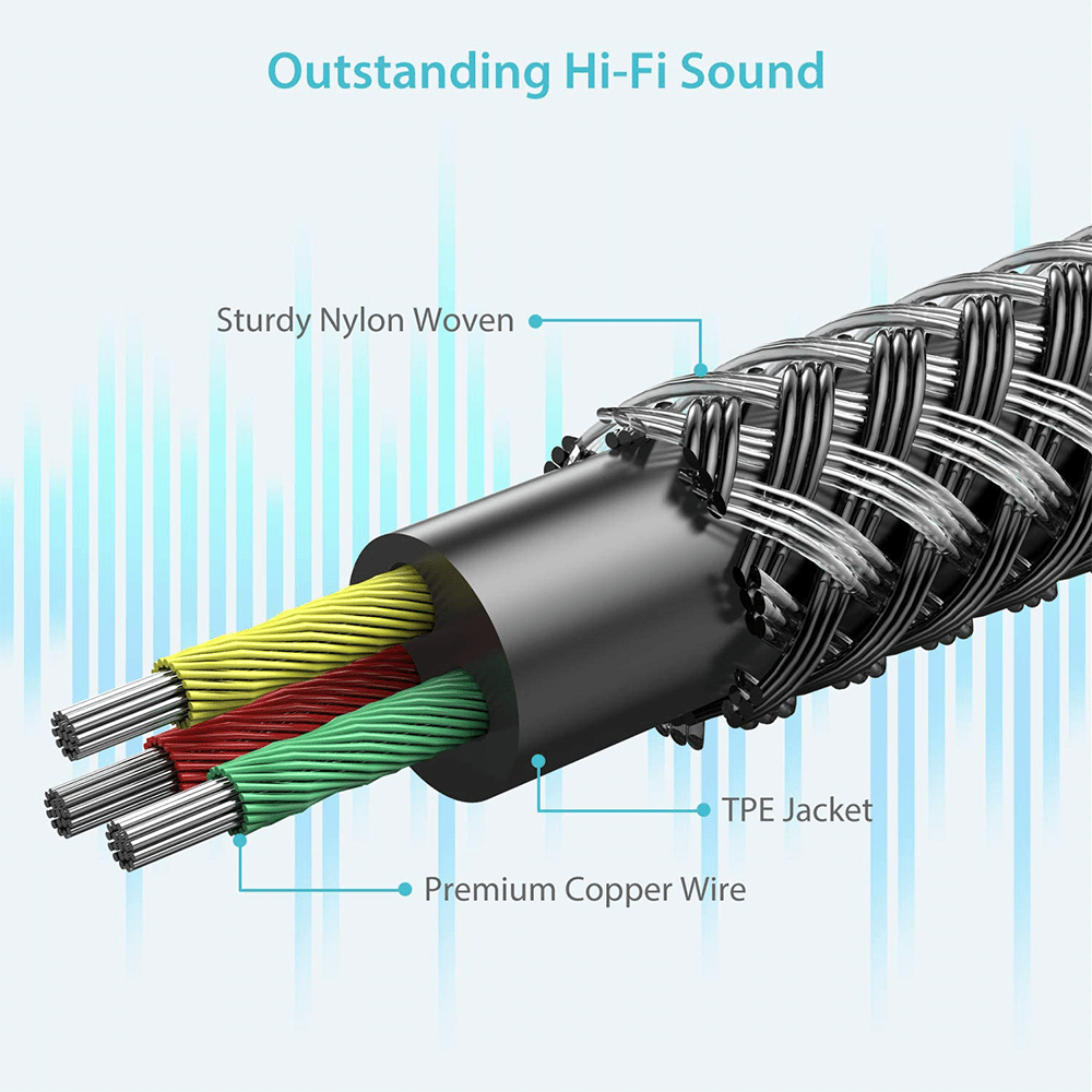 Syncwire 3.5mm to 2-Male RCA Adapter Cable adopts standard 3.5mm stereo interface. Polished 24K gold-plated connectors ensure reliability and eliminate signal loss and noise possible, offer clear and stereo sound to your devices.