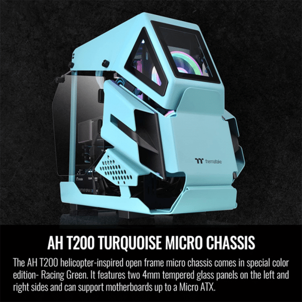 Thermaltake AH T200 Helicopter Styled Open Frame Micro ATX Gaming Case – Turquoise