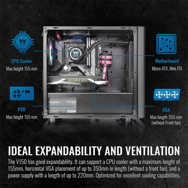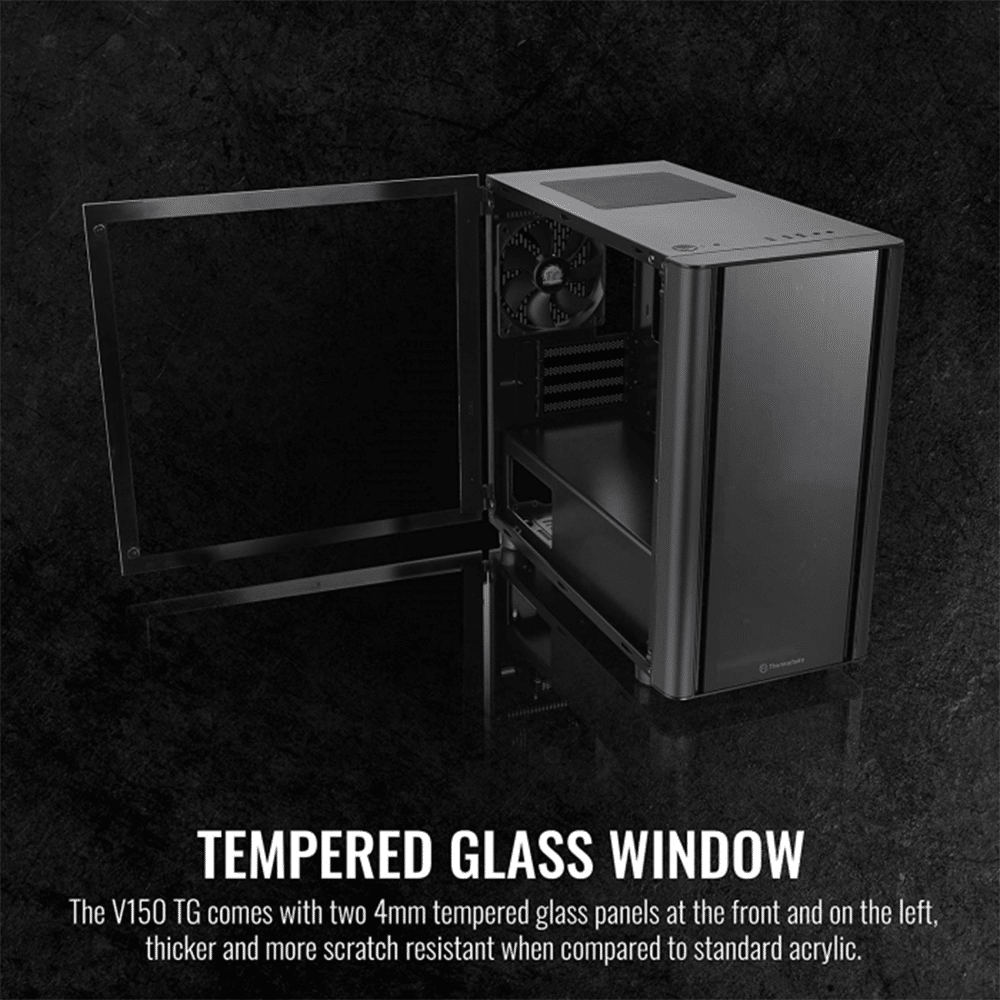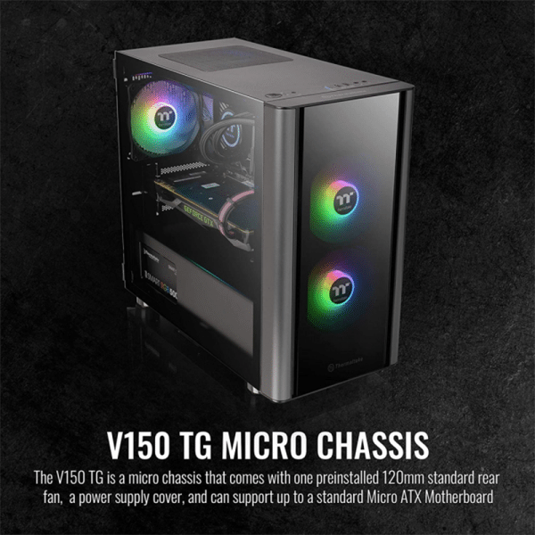 Thermaltake V150 TG ATX Mid Tower Tempered Glass Side Panel Micro Case With 1 ARGB Fans – Black
