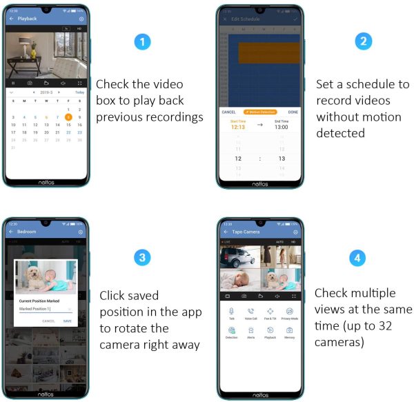 See more you want from different devices, as it contains 4 views in one page and supports up to 32 cameras in one app.