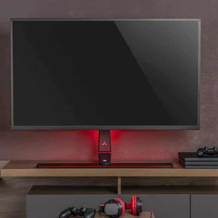 Description for Twisted Minds RGB Lighting Gaming Tabletop TV Stand, Swivel Ability, Detachable Extension Plate, Height Adjustable, Black | TM-03-12ST