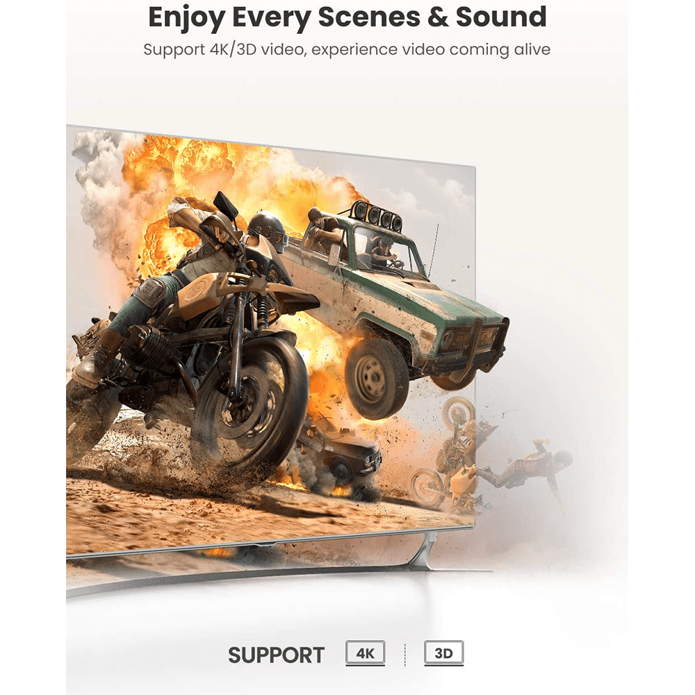 Built-in high performance chip, deliver video at resolution of 4K 4096x2160 @30Hz(Supports 4K@60Hz with cable under 5m), 1080P @120Hz, provides the stunning 4K video for you;