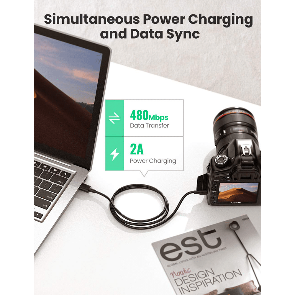 A good solution to connect devices with a mini USB Type B 5-pin port for fast data transfer and reliable charging.