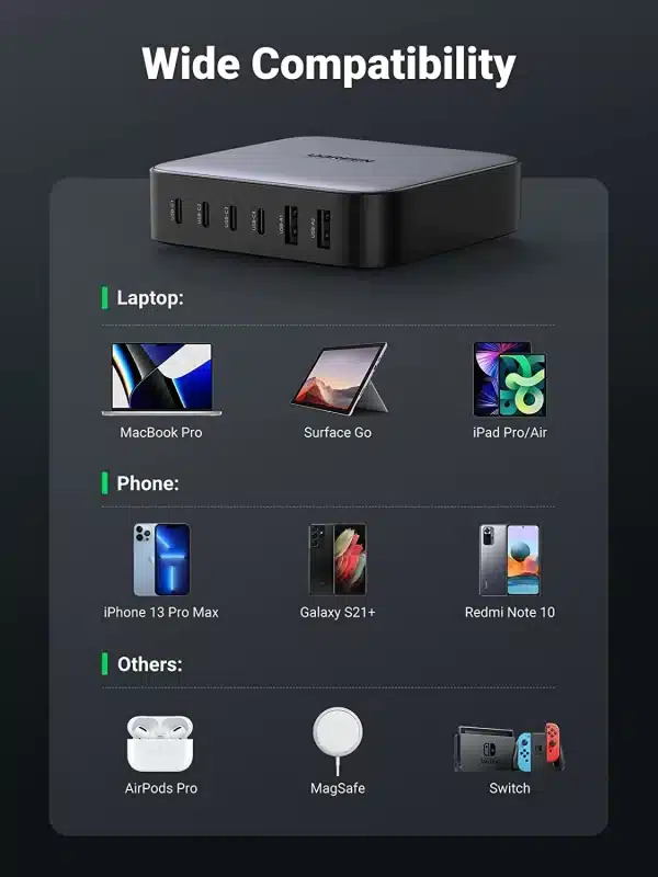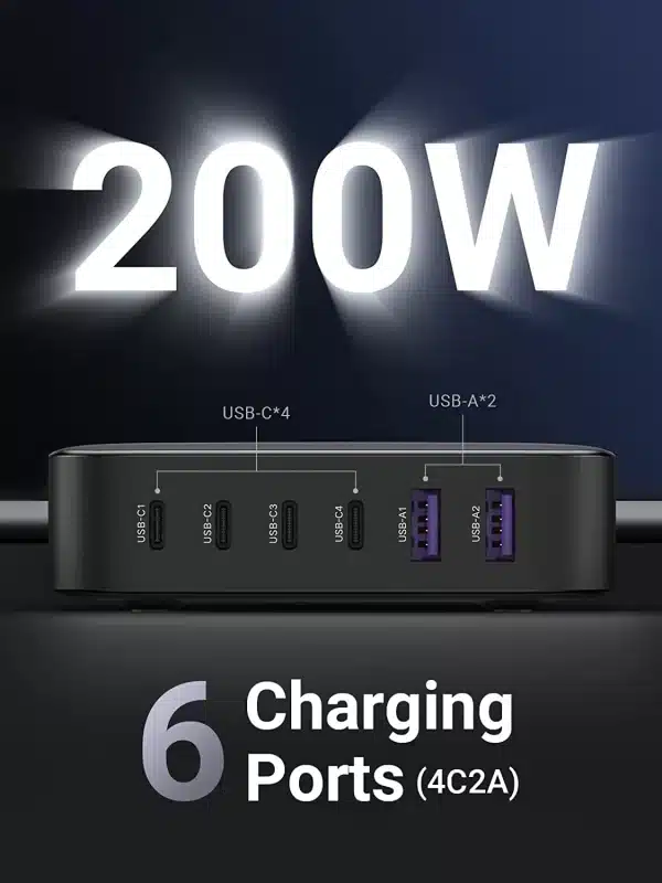Ugreen Nexode 200W USB C GaN Charger-6 Ports Desktop Charger